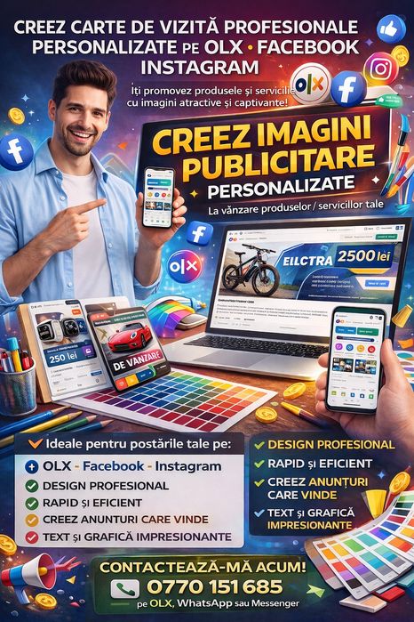 Aventura ta incepe pe OLX.ro! Cu un click plin de incredere, intri in contact direct cu furnizori de servicii, pregatiti sa discute detaliile ofertelor lor fascinante. Foloseste sectiunea dedicata serviciilor si aplica filtrele potrivite pentru a gasi specialistii ideali pentru nevoile tale. Indiferent ca preferi sa trimiti un mesaj direct sau sa suni pentru o discutie mai detaliata, OLX.ro iti asigura o comunicare eficienta si transparenta. Dezvaluie-ti dorintele si asteptarile si lasa furnizorii de servicii sa-ti transmita o oferta servicii personalizata de publicitate, asigurare sau servicii IT pentru a-ti transforma visurile in realitate.