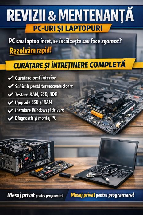 Instalare Windows, Mentenanta PC, Asamblare PC, Curatare laptop