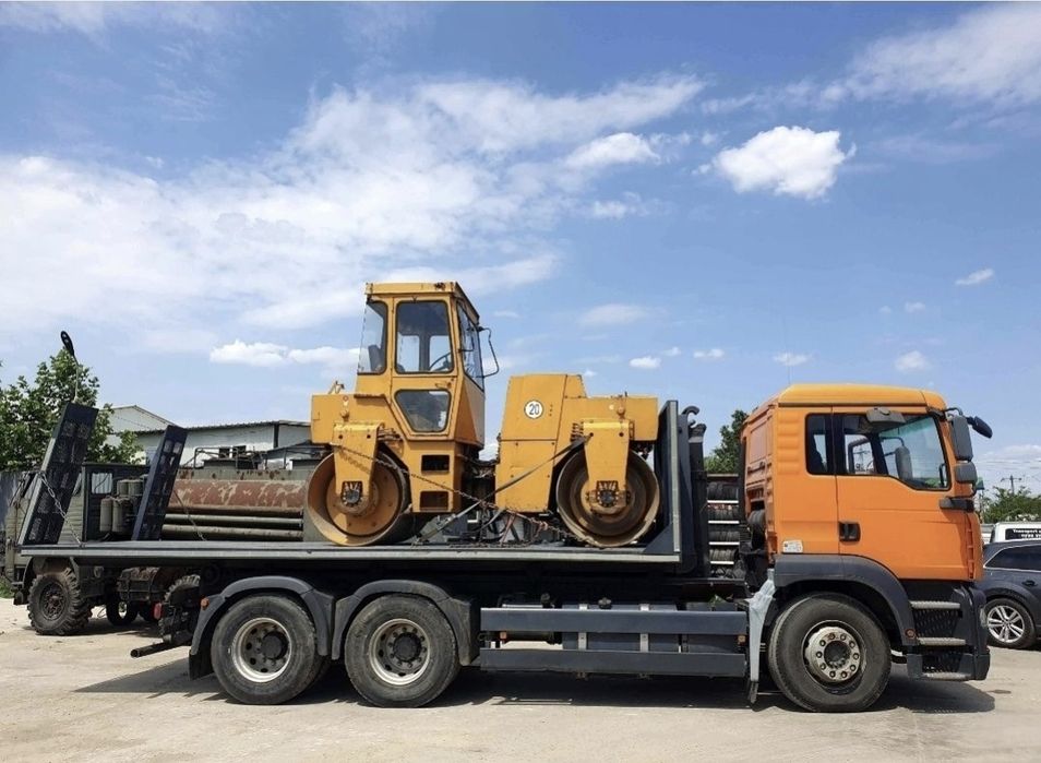 Transport utilaje cu trailer si camion cu macara