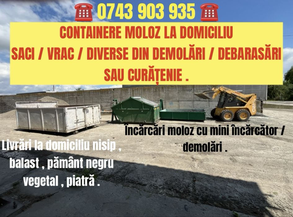 CONTAINERE MOLOZ VRAC-SACI-Demolari-Pamant-Diverse Debarasari-Bobcat.