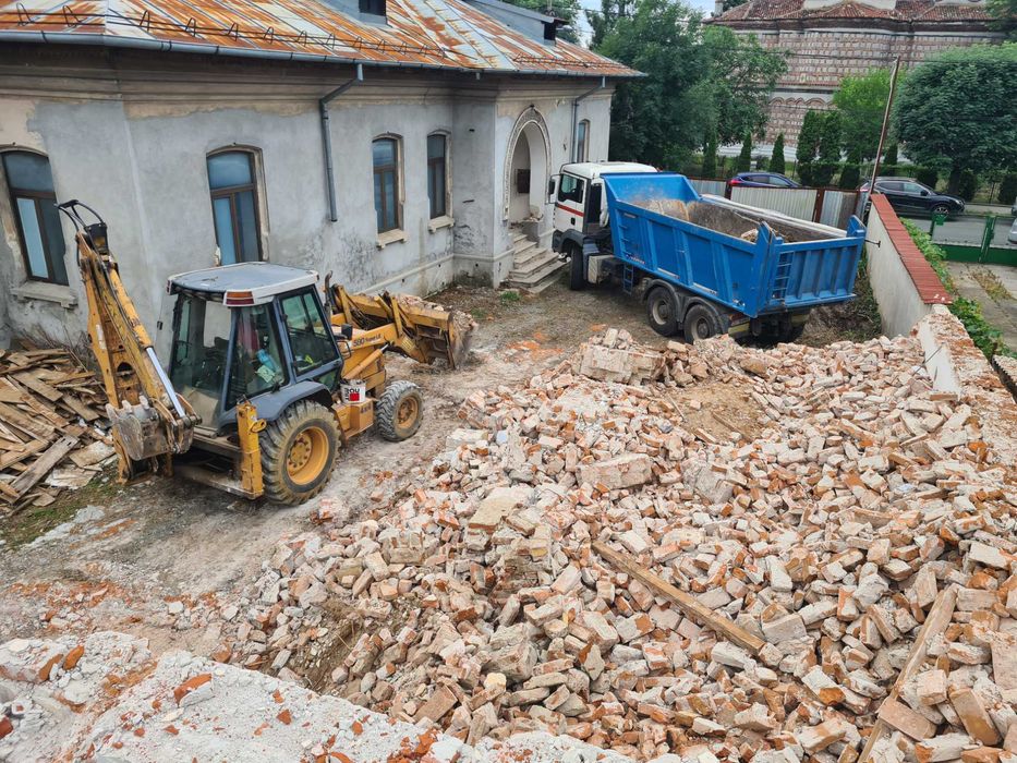 Demolari case. Basculante, Buldo, Echipa oameni. Evacuare moloz, moluz