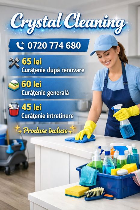 OLX.ro iti deschide usile catre o lume plina de avantaje in contactarea serviciilor de curatenie! Cu un strop de farmec, gasesti furnizori priceputi si pasionati sau firme de curatenie. Cu un simplu click, ai acces la o varietate de oferte atractive si promotii speciale. OLX.ro promoveaza comunicarea directa cu furnizorii de curatenie la domiciliu, astfel incat sa poti discuta detaliile si sa alegi solutia perfecta. Cu flexibilitate in programare si tarife accesibile, OLX.ro iti ofera experienta curateniei fara batai de cap. Alege OLX.ro pentru a aduce magia curateniei in casa ta si bucura-te de o viata mai stralucitoare si mai confortabila!