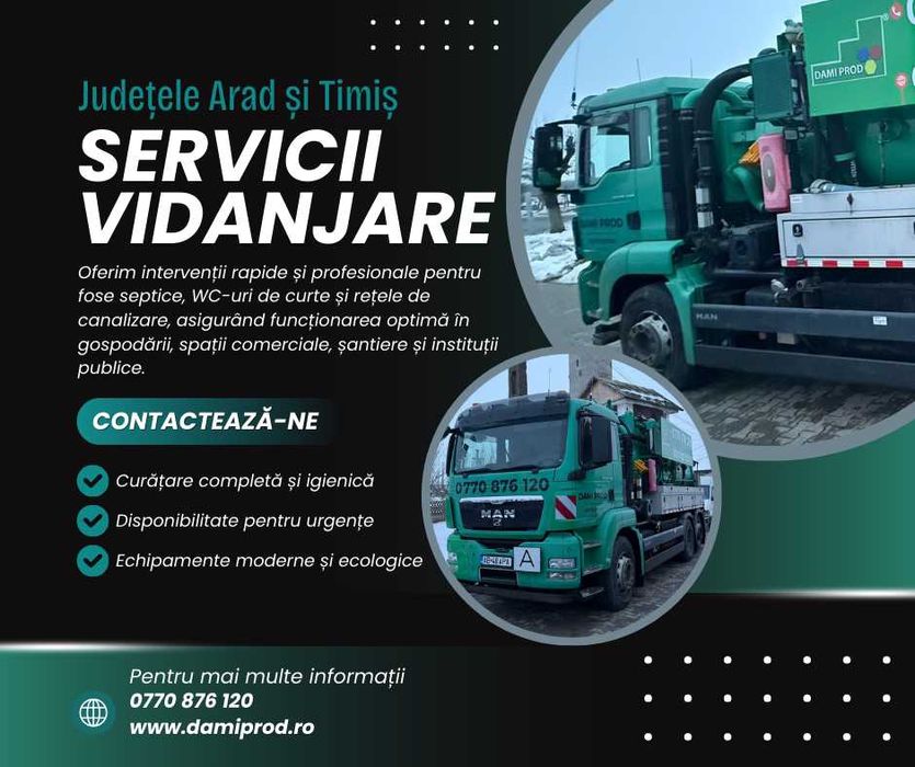 Intra pe OLX.ro si vezi toate anunturile din categoria de Servicii de vidanjare, desfundare tevi si canale ⭐ Acceseaza Servicii de vidanjare, desfundare tevi si canale acum!