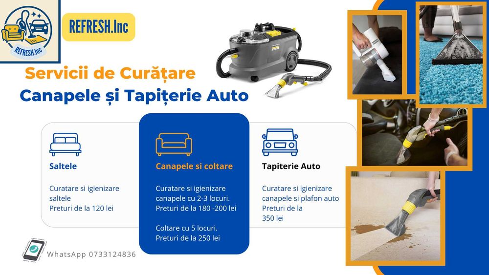 Ai de facut curatenie in apartament, in birou sau in masina? Toate aspectele sunt acoperite. Identifica in cel mai simplu mod specialistii care iti vor oferi servicii de spalare tapiterie si covoare de incredere, la un pret corect. De regula, un serviciu de spalare covoare se va ocupa de toata gama – de mochete, covoare persane, din lana sau material sintetic si de orice dimensiune. Ai la dispozitie firme ce se ocupa de curatare uscata, umeda sau curatare eco. Specialistii se ocupa de mobilier tapitat, saltele, covoare, tapiterii auto si altele.