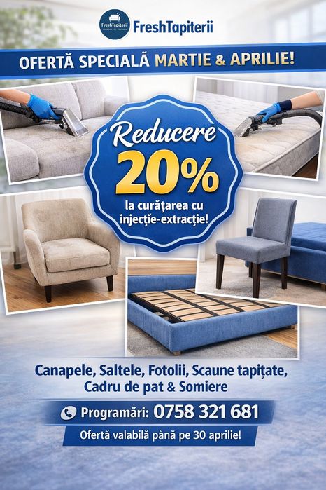 Curatare tapiterii (auto, canapele, saltele, fotolii, mochete)