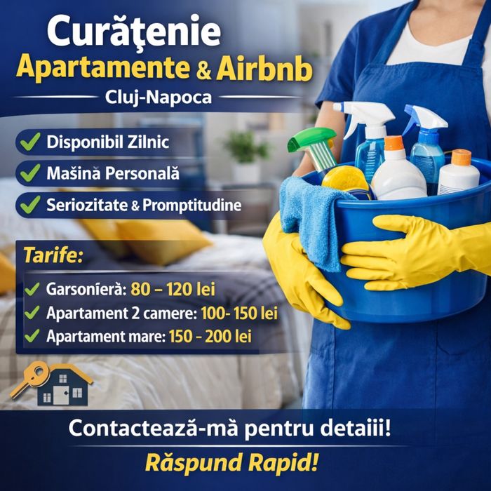 OLX.ro iti deschide usile catre o lume plina de avantaje in contactarea serviciilor de curatenie! Cu un strop de farmec, gasesti furnizori priceputi si pasionati sau firme de curatenie. Cu un simplu click, ai acces la o varietate de oferte atractive si promotii speciale. OLX.ro promoveaza comunicarea directa cu furnizorii de curatenie la domiciliu, astfel incat sa poti discuta detaliile si sa alegi solutia perfecta. Cu flexibilitate in programare si tarife accesibile, OLX.ro iti ofera experienta curateniei fara batai de cap. Alege OLX.ro pentru a aduce magia curateniei in casa ta si bucura-te de o viata mai stralucitoare si mai confortabila!
