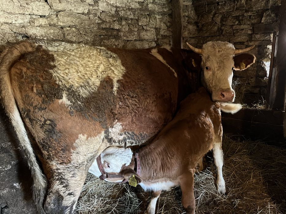 Vaca la prima fătare cu vitel