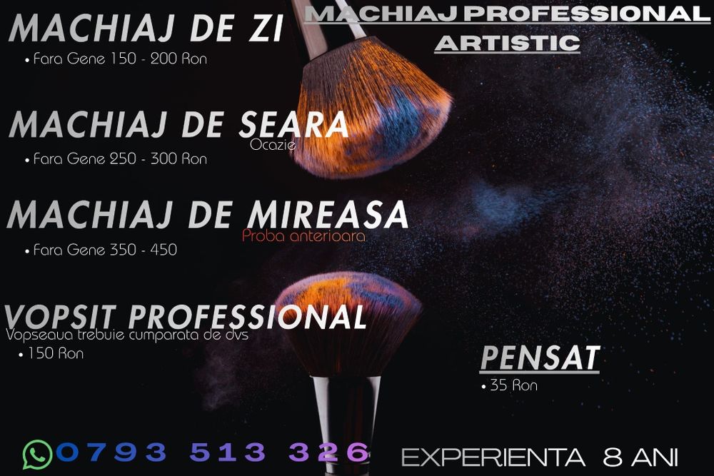Un specialist in machiaj si tratamente faciale are experienta si pregatirea necesare pentru a a oferi servicii de calitate. O sedinta de tratament facial te poate relaxa si iti poate aduce o stare de bine generala. Un specialist in machiaj va sti sa isi adapteze stilul conform cerintelor tale, tinand cont si de ce iti avantajeaza fizionomia. Pentru un tratament facial serviciile vor fi adaptate in functie de tipul tau de piele si de cerintele tale. O programare din timp iti poate aduce si beneficii la oferte. Trimite un mesaj si intreaba despre posibile reduceri sau oferte.