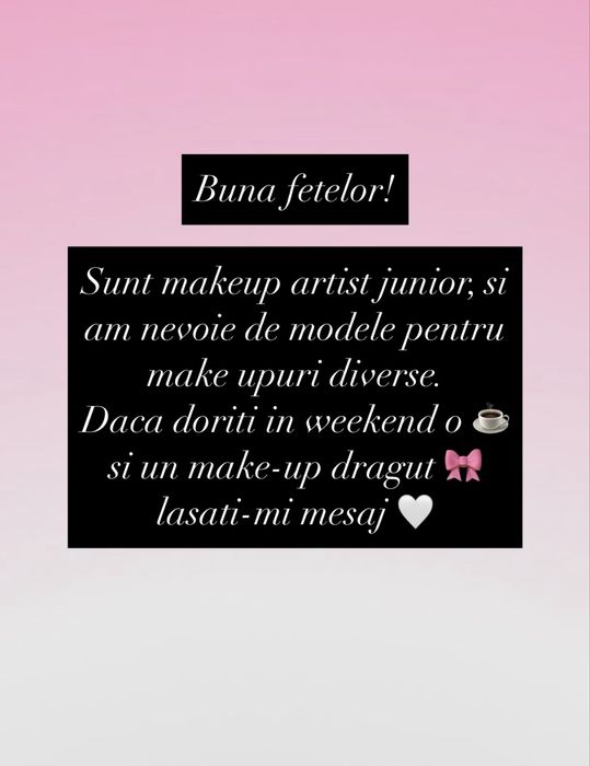 Un specialist in machiaj si tratamente faciale are experienta si pregatirea necesare pentru a a oferi servicii de calitate. O sedinta de tratament facial te poate relaxa si iti poate aduce o stare de bine generala. Un specialist in machiaj va sti sa isi adapteze stilul conform cerintelor tale, tinand cont si de ce iti avantajeaza fizionomia. Pentru un tratament facial serviciile vor fi adaptate in functie de tipul tau de piele si de cerintele tale. O programare din timp iti poate aduce si beneficii la oferte. Trimite un mesaj si intreaba despre posibile reduceri sau oferte.