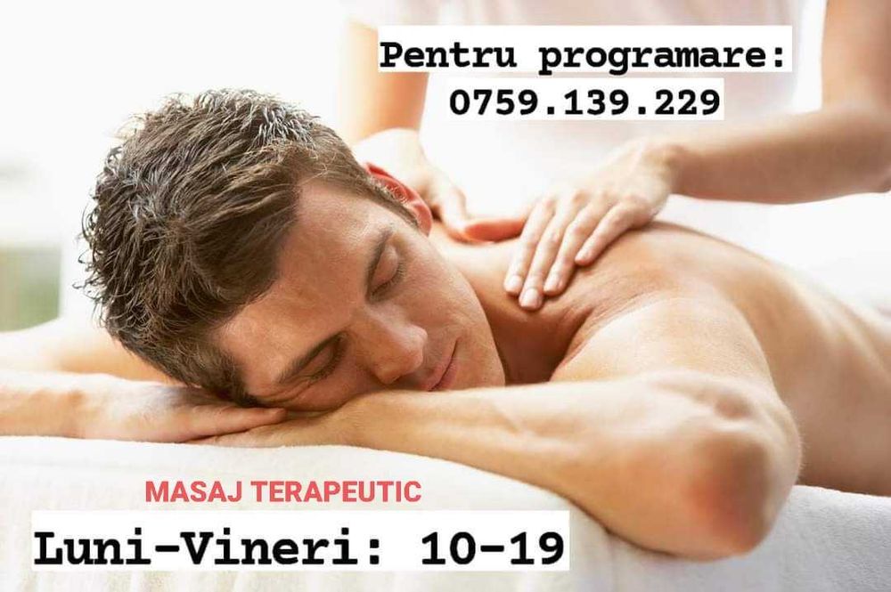 Platofrma olx.ro ofera o gama larga de servicii specifice pentru nevoile tale. Daca esti in cautare de servicii de masaj terapeutic, pe olx.ro vei gasi mai multe oferte din care sa alegi ce ti se potriveste. Pe olx.ro gasesti kinetoterapeuti care ofera servicii de masaj de relaxare, masaj terapeutic, masaj medical, masaj pentru recuperare medicala si multe alte oferte. Acceseaza olx.ro direct de pe mobil, din aplicatia olx.ro. Vei gasi in categoria servicii medicale anunturi pentru masaj fizioterapie pe care sa le rasfoiesti cu usurinta.